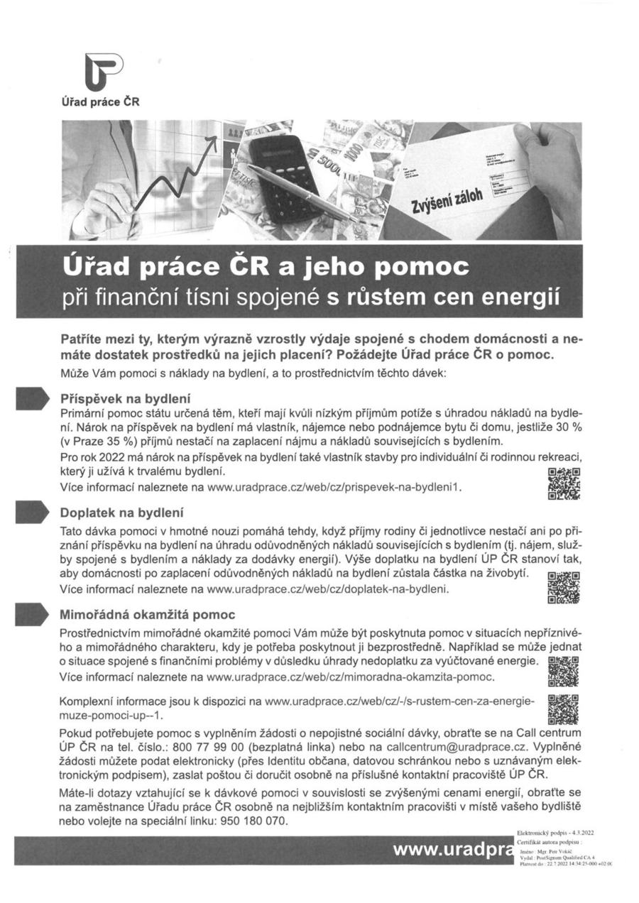 Úvod > Úřad > Aktuality > Informace úřadu práce a jeho pomoc při finanční tísni