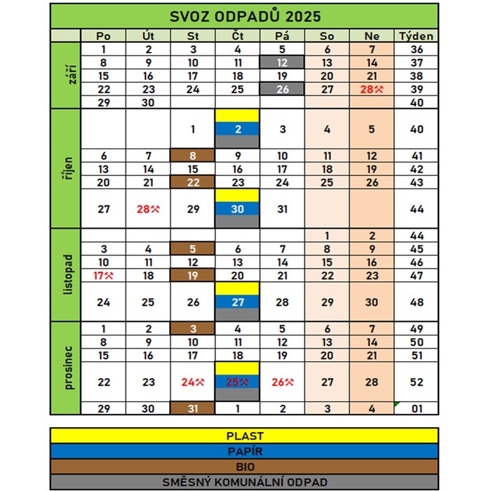Úvod > Úřad > Aktuality > KALENDÁŘ SVOZU ODPADŮ 2025
