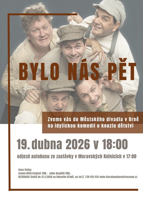 Úvod > Úřad > Aktuality > Nezapomeňte na divadlo - Bylo nás pět - v Brně