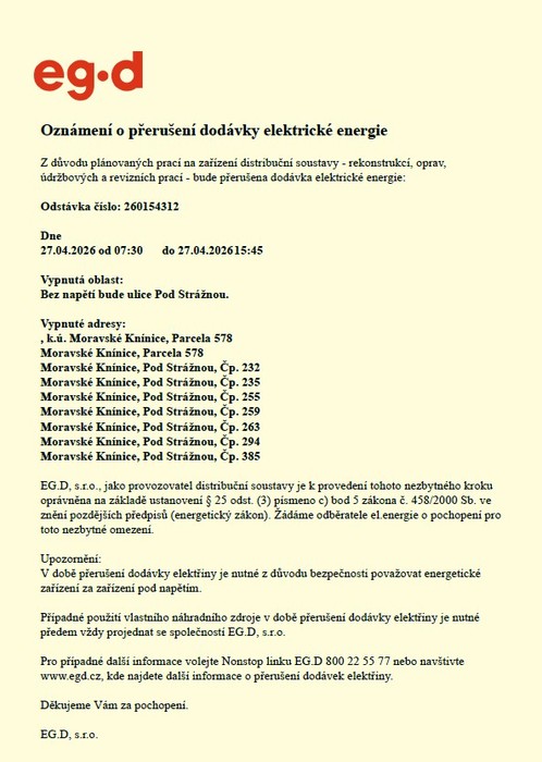 Úvod > Úřad > Aktuality > Přerušení dodávky elektrické energie
