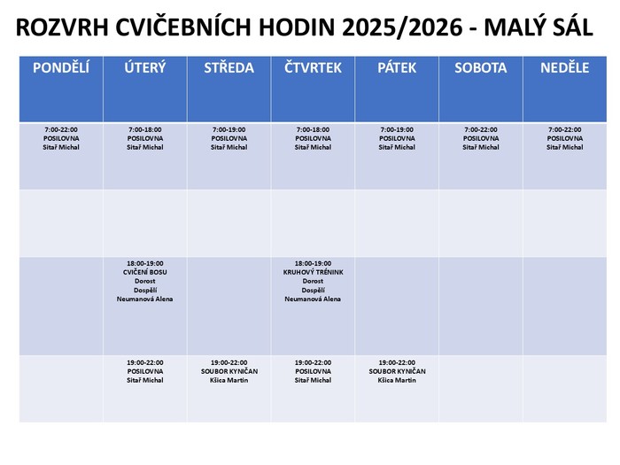 Úvod > Úřad > Aktuality > ROZVRH CVIČEBNÍCH HODIN 2025-2026 V SOKOLOVNĚ - malá tělocvična