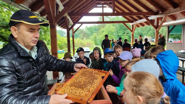 Dvanácté červnové dopoledne jsme si zpříjemnili výletem do zdejší přírody. Tento zážitek jsme spojili s každoročním setkáním s místními myslivci. Těm bychom chtěli srdečně poděkovat za krásně a poučně strávené chvíle u myslivecké chaty. I letos si myslivci pro děti připravili zajímavý program – přednášku se včelařem, povídání o myslivosti a tradiční střelbu ze vzduchovky. Myslivci dětem jako každoročně věnovali kus svého volného času a postarali se i o bohaté občerstvení. Za to jim patří náš velký dík!
