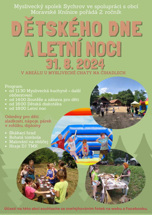 V sobotu 31. srpna se uskutečnil II. ročník akce mysliveckého spolku a obce s názvem Dětský den a letní noc 2024. Pro děti byla v okolí myslivecké chaty na Čihadle připravena řada soutěží, myslivci zajistili perfektní občerstvení včetně myslivecké kuchyně. DJ TMK hrál dlouho do noci.