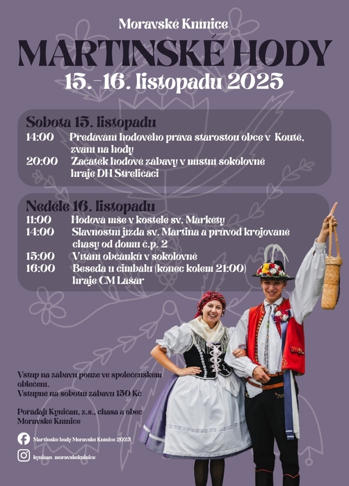 V sobotu uspořádal spolek Kyničan Martinské krojované hody. V neděli se pak uskutečnil v sokolovně tradiční Den obce spojený s Martinskou jízdou, průvodem krojované chasy a vítáním občánků.