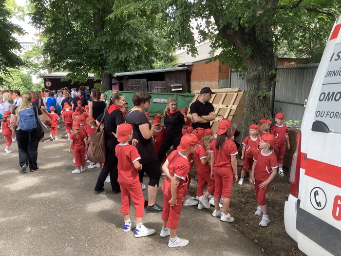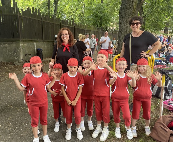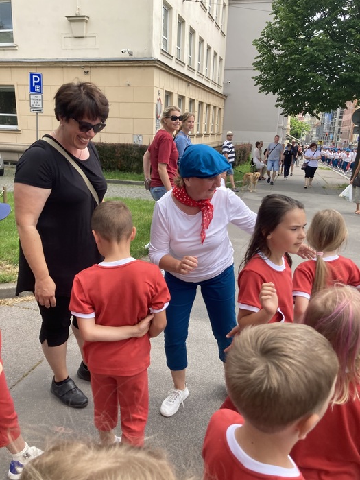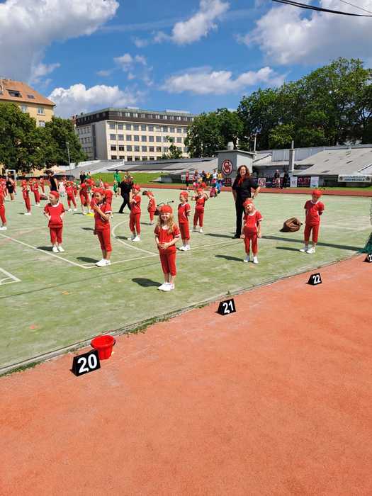 Dne 9. června se některé děti ze třídy Koťátek se svými učitelkami zúčastnily Všesokolského sletu v Brně. Vyrazili jsme ráno autobusem z Knínic, poté jsme si užili cestu vlakem a nakonec tramvají. Na stadionu jsme si vyzkoušeli nástup a provedení skladby, smlsli si u stánků nějaké ovoce a dobrůtky, zařádili si na hřišti v Tyršových sadech a zhlédli slavnostní průvod Brnem. Protože už jsme byli převlečeni v úborech mravenečků a Ferdy Mravence, bylo pro děti velkým zážitkem, když nám celý průvod mával a zdravil nás. Mohli jsme tak zamávat i knínickým dětem, ženám a mužům, kteří se průvodu účastnili. Potom už jsme netrpělivě vyčkávali slavnostní okamžik, na který jsme tak dlouho trénovali. Na plochu před zaplněný stadion jsme nastupovali jako druzí a vzdor všudypřítomné nervozitě jsme si cvičení užili a se ctí ho zvládli. Chtěla bych moc poděkovat kolegyni Terezii Pekaříkové, která se mnou celou dobu zcela dobrovolně na nácviku spolupracovala, rodičům, kteří si udělali v neděli čas a přišli nás podpořit, a všem, kteří nám drželi palce. Myslím, že zážitek to byl velký jak pro děti, tak pro dospělé, a celý den jsme si bez komplikací náramně užili.