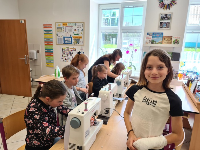Ve čtvrtek 9. 5. 2024 proběhlo ve školní družině šicí odpoledne, které uspořádala MAS Brána Brněnska ve spolupráci s paní učitelkou Janou Gecovou. Děti se seznámily s obsluhou šicího stroje a pustily se do výroby polštářku do své postýlky. Pracovaly dle pokynů paní lektorky a paní učitelky. Postupovaly krok za krokem, připravily si materiál a špendlily, šily, žehlily. Nakonec si namalovaly na svůj polštářek obličej a každý si domů odnášel vlastního „Pyžamožrouta“.