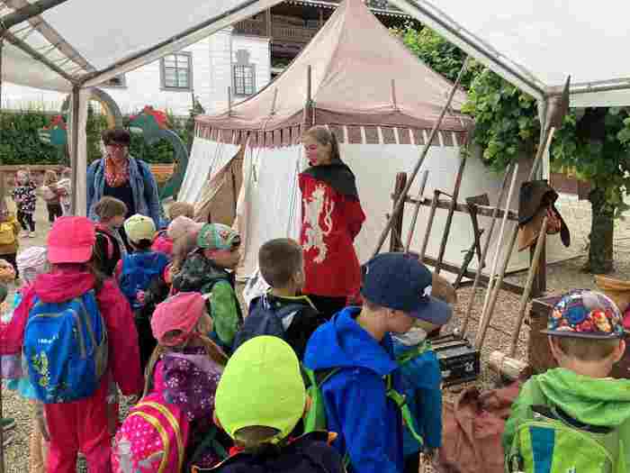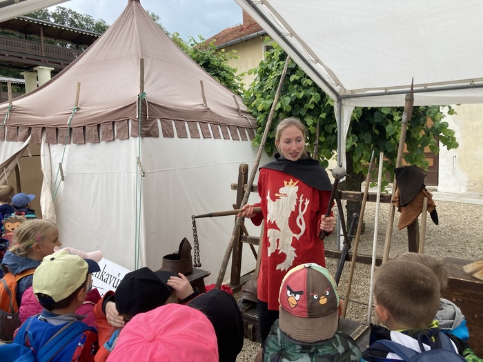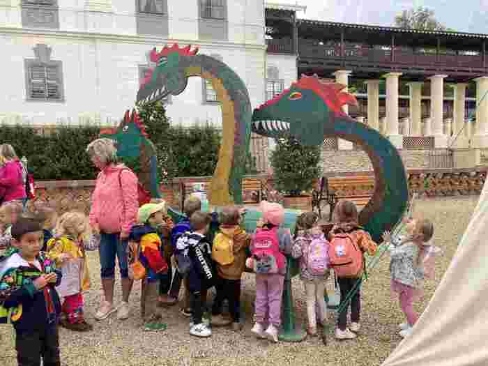 Ve středu 12. června se celá mateřská škola vydala dvěma autobusy na výlet do Lysic. Na nádvoří zámku byl pro nás připravený program, který se skládal z Rytířské pohádky Princ Bajaja s živým koněm a dílniček, kde si děti mohly vyzkoušet stará řemesla. Mohly lámat a česat len, namlet obilí pomocí dvou malých mlýnských kamenů, vyzkoušet si dobové zbraně a helmy a seznámit se s koníkem Hombrem, který účinkoval v pohádce. Během pohádky se děti dozvěděly, jak se oblékal rytíř, jak se dříve hodovalo, jak se sedlal kůň. Celý program pro nás připravili Pěnkavovi z Takonína. Součástí výletu byla samozřejmě i bohatá svačina na nádvoří zámku, někteří malí výletníci se pak osvěžili spánkem v autobusu na zpáteční cestě. Ve školce na nás čekala teplá polévka a výborné buchty od našich skvělých kuchařek.