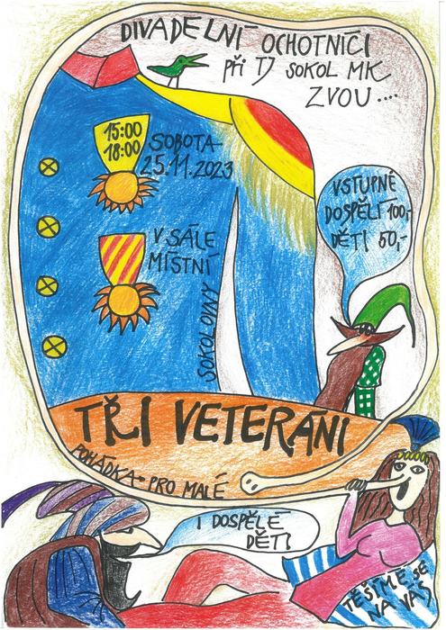 Zjistili jsme to v sobotu 25. prosince v místní sokolovně na novém představení našich ochotníků Tři veteráni. V této divadelní hře na motivy pohádky Jana Wericha obdrží tři vysloužilí vojáci od skřítků kouzelné předměty, kterými se snaží zpříjemnit si život. Dostanou se až do královského paláce, kde je krásná, leč vychytralá princezna Bosana se svým královským otcem o vše oberou. Nicméně pomsta na sebe nenechá dlouho čekat: Bosaně naroste dlouhý nos. Vyléčit ji mohou jen tři mágové (rozuměj převlečení veteráni), ovšem až poté, co jim princezna s králem vydají ukradené předměty.