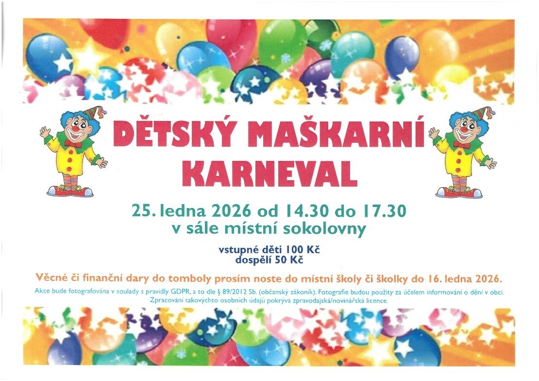 | 25.01.2026 | 15:00 | Dětský maškarní karneval 2026 | ZŠ a MŠ Moravské Knínice |